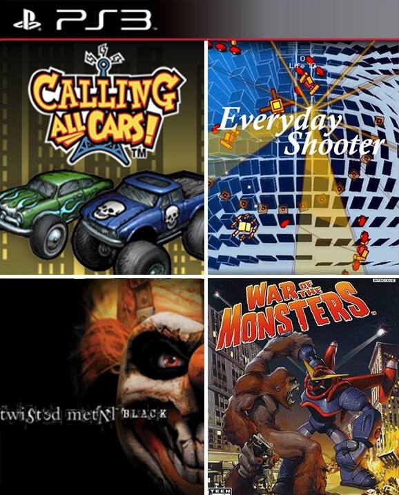 4 JUEGOS EN 1 Twisted Metal Black + Calling All Cars + Everyday Shooter + War of the Monsters PS3