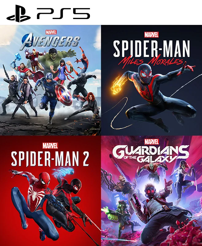 4 juegos en 1 Marvels Avengers mas Marvel's Spider-Man: Miles Morales mas MARVEL'S SPIDER MAN 2 mas Marvel's Guardians of the Galaxy PS5